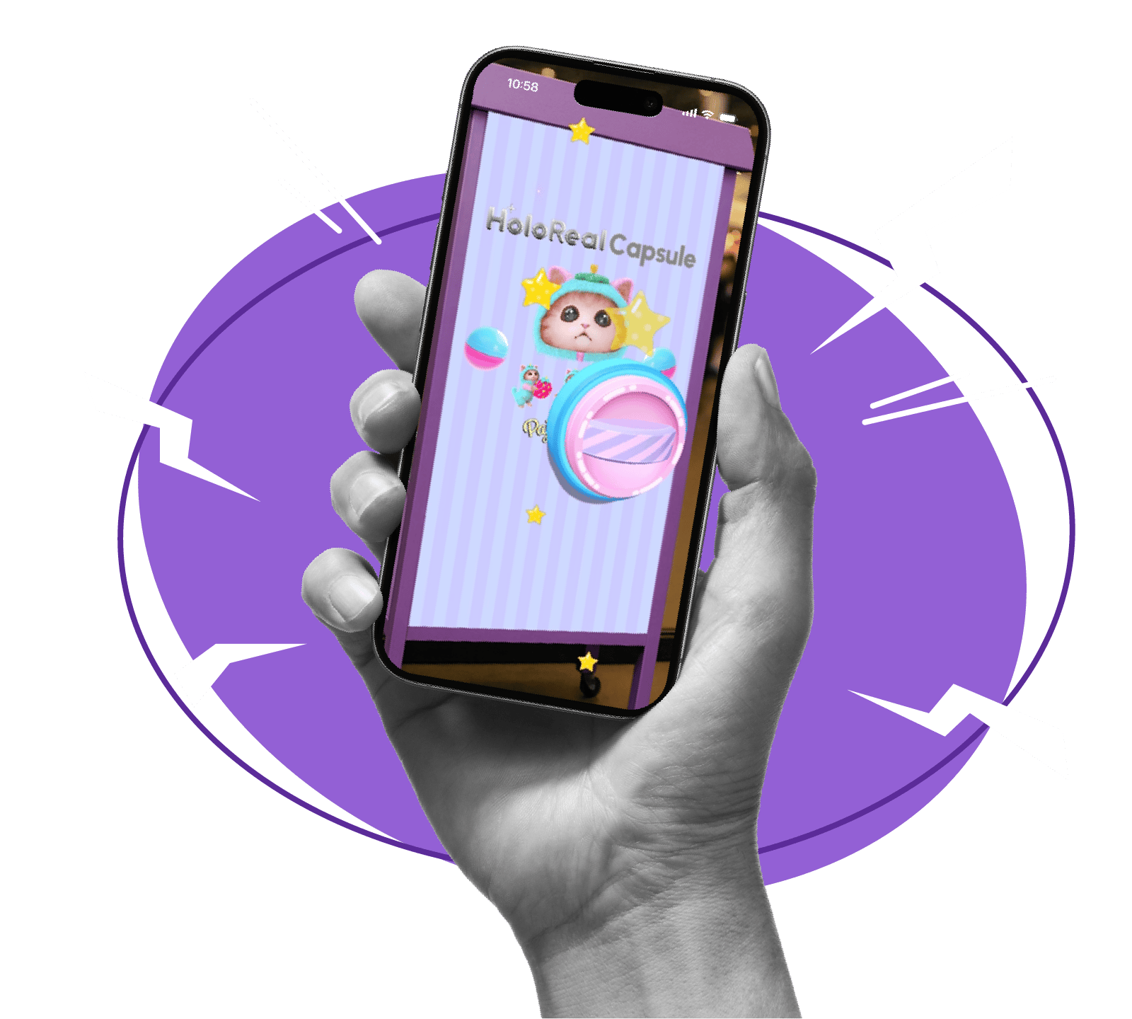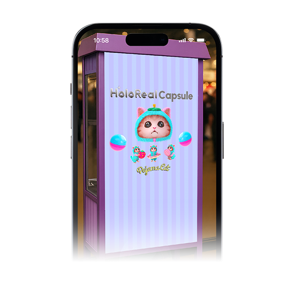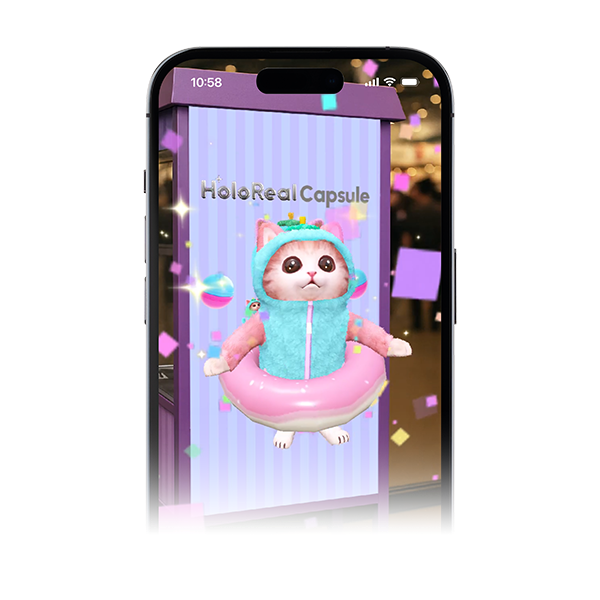 HoloReal Capsuleは、リアルとデジタルが融合した新しいホロリアル体験によるカプセルトイを提供するサービスです。スマートフォンARでカプセルトイマシンを操作し、リアルまたはデジタルの景品を獲得できます。